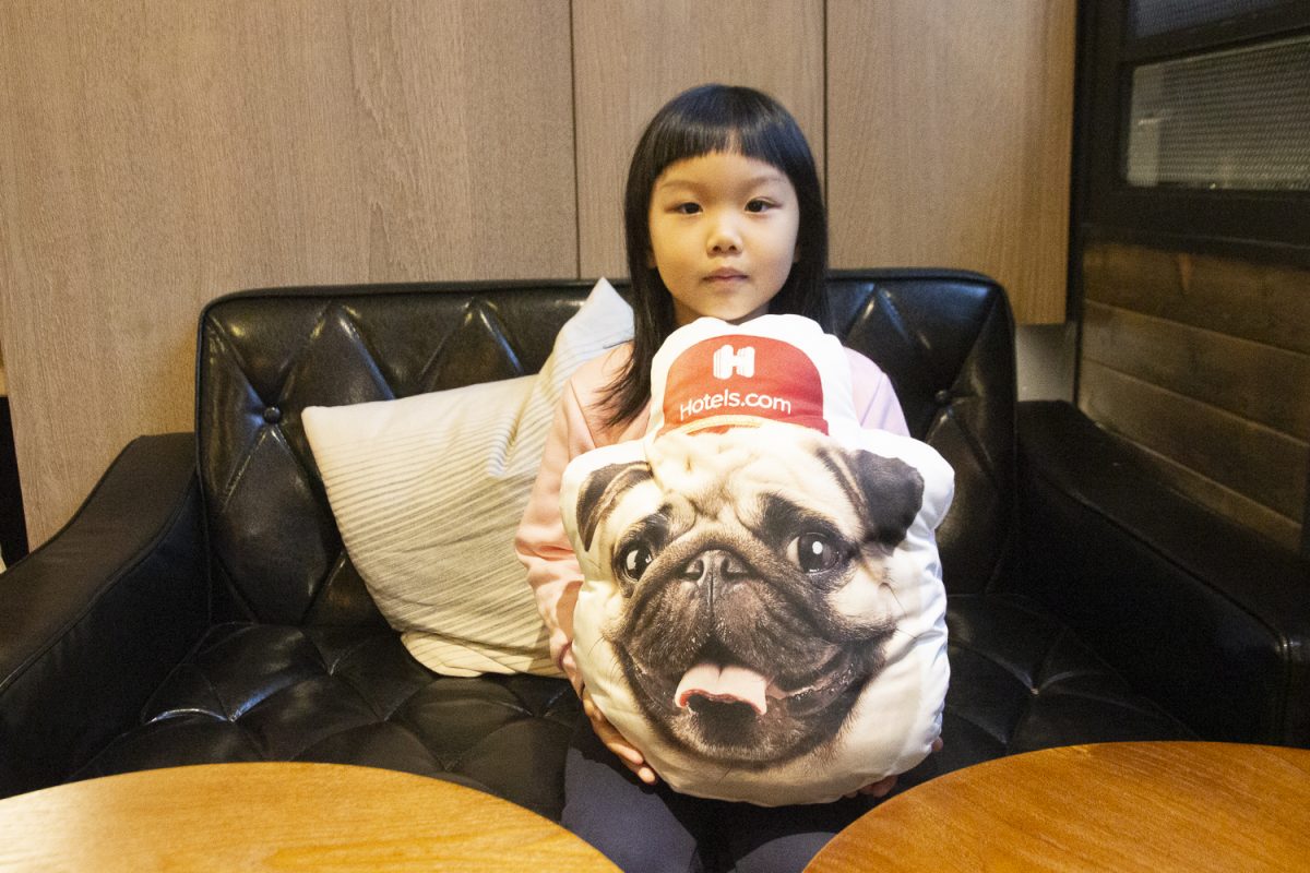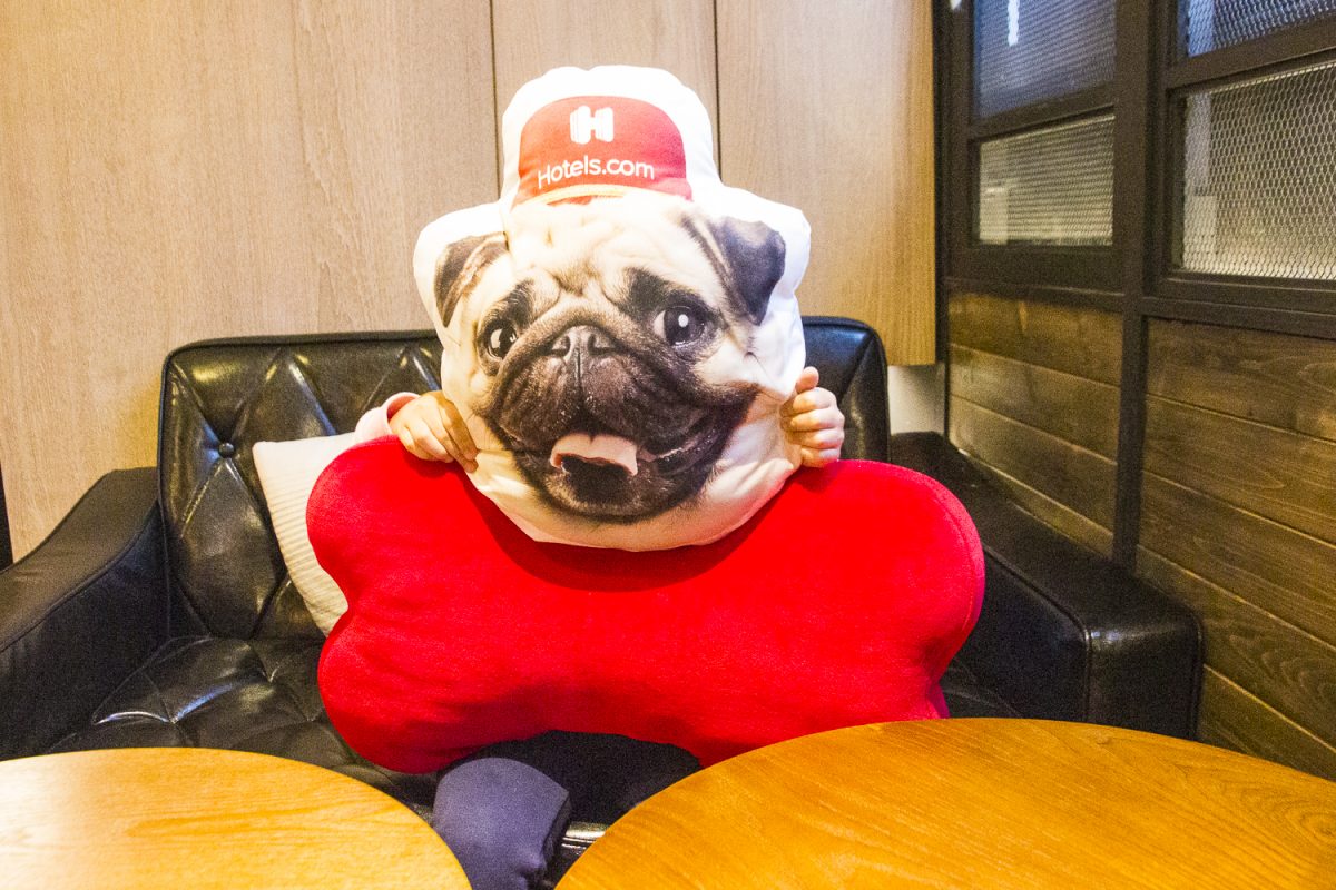 大抱枕Bellbug戴著Hotels.com的招牌紅色帽,實在有夠古錐耶。
