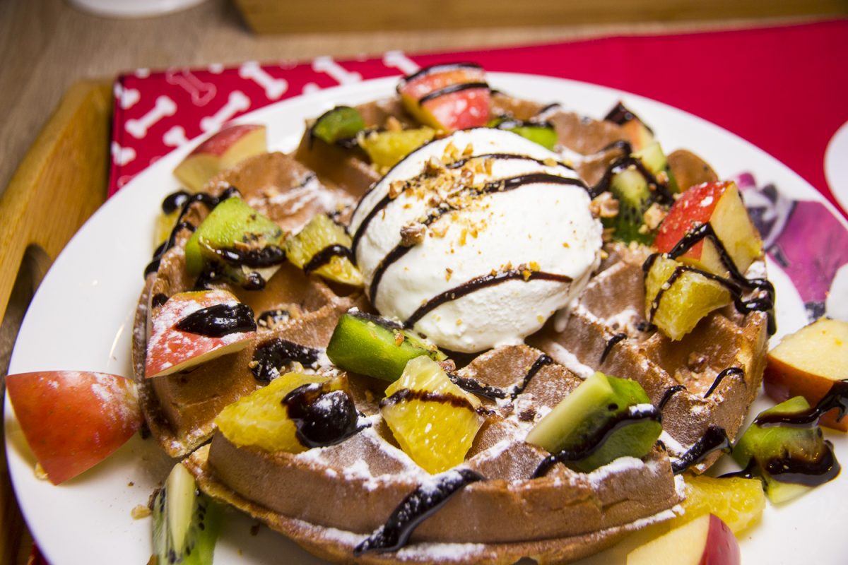 鬆餅共有4大塊,最上層是香草冰淇淋,