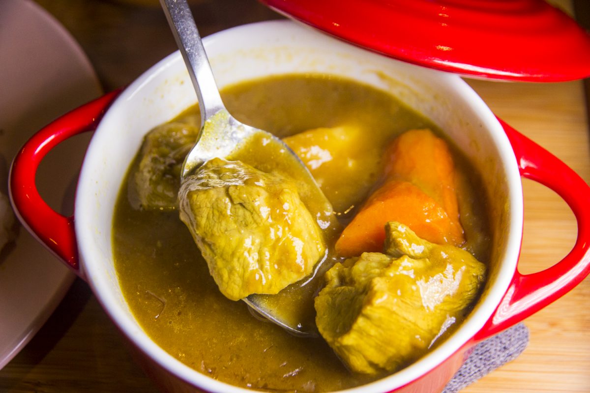 日式咖哩香滑濃稠,豬肉肉質軟嫩不柴口,