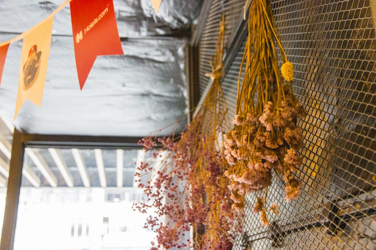 用餐區天花板上有Bellbug的紅白掛旗裝飾,