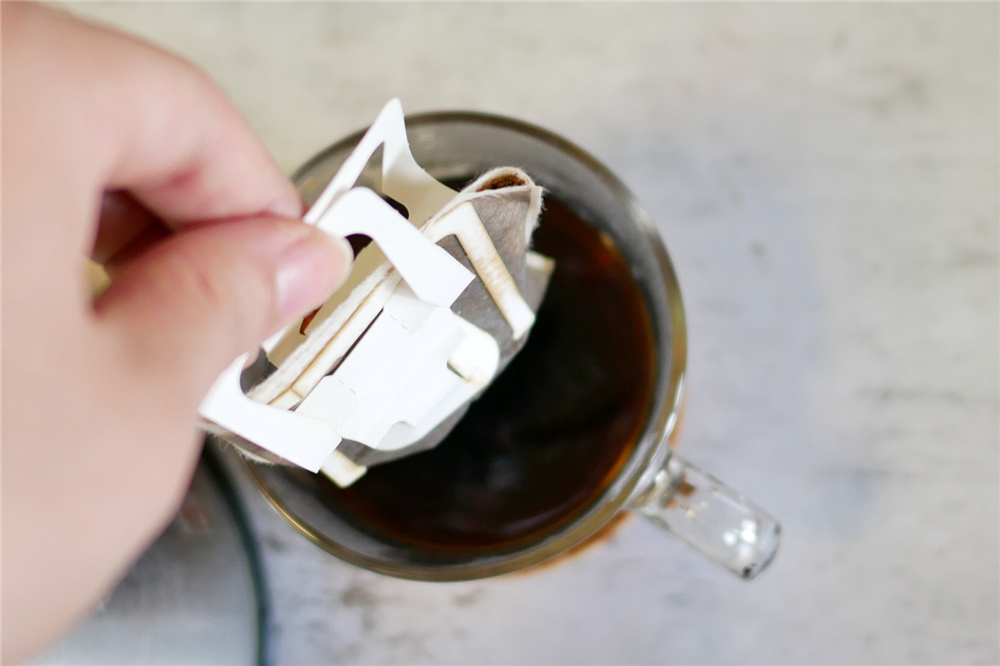 2.將左右兩邊的把手從下方拉開,把濾泡袋放在杯口。