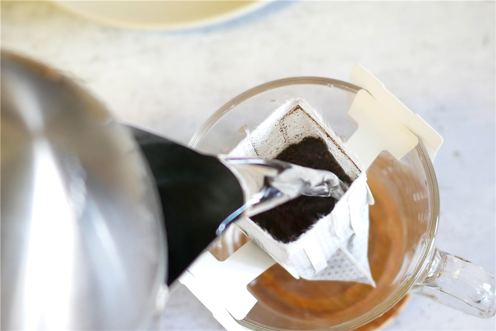 3.分次注水,少量多次!等待的時刻邊聞著香氣之後就可以享用美味的咖啡啦!