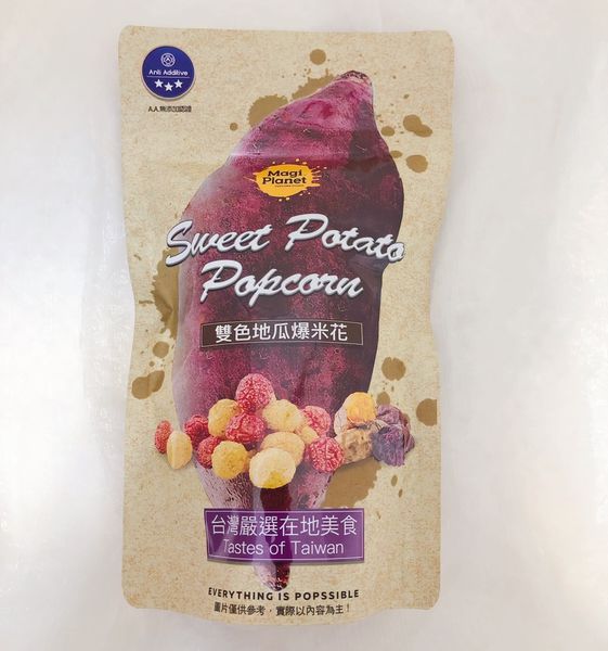 { Magi Planet星球工坊 }雙色地瓜口味爆米花,榮獲國際A.A國際食品無添加協會的認證獎章,