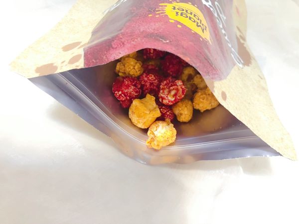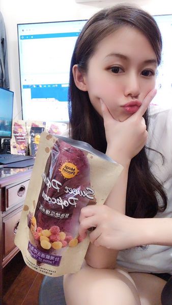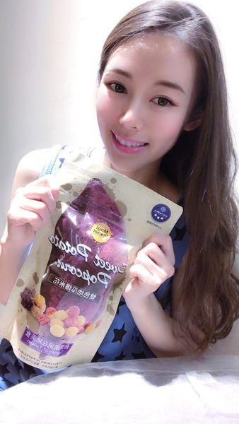 ㄧ打開來就能聞到濃濃的地瓜香,綜合了黃金地瓜和紫心地瓜,吃起來口味一樣,圓圓可愛的爆米花,ㄧ咬下去口感酥脆