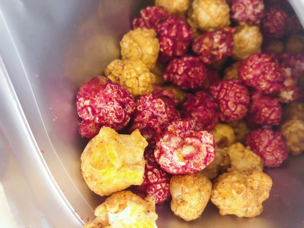 從外觀就看的到雙色的混搭爆米花,真的好吸引人,迫不及待想吃了呀!