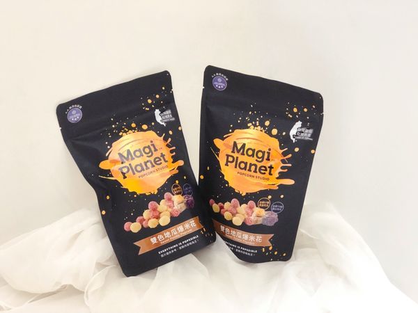 這個辦公室抽屜美食{ Magi Planet星球工坊 }雙色地瓜口味爆米花,外包裝有兩種不同的容量包裝,