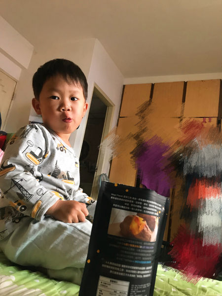 米寶用很稚嫩的聲音對著小米說:那個看起來很好吃,我要吃吃看!!
