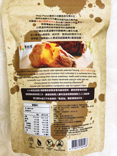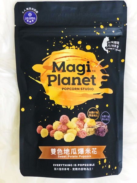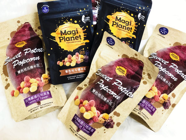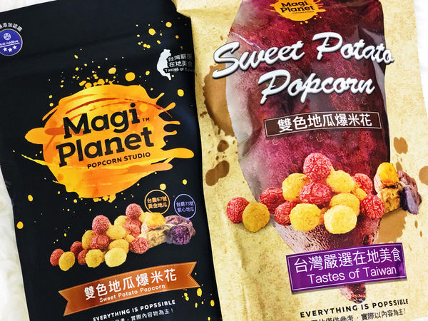 爆米花因該是少女和小孩最愛的零嘴之一吧!!無論在家或在電影院看電影一定要來份爆米花才過癮~有一陣子瘋狂嗑爆米花無法克制的我當然體重也足漸上升 , 最近突然超想吃爆米花的正在尋覓發現網路瘋傳 Magi Planet星球工坊爆米花的雙色地瓜球是以黃金地瓜和紫心地瓜為食材 , 完全打破以往在市面上購買吃到的爆米花口味都是很甜到不行