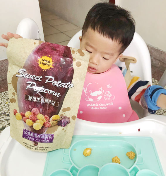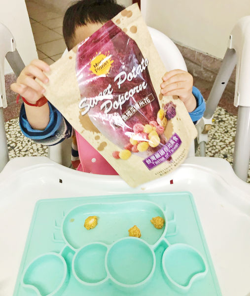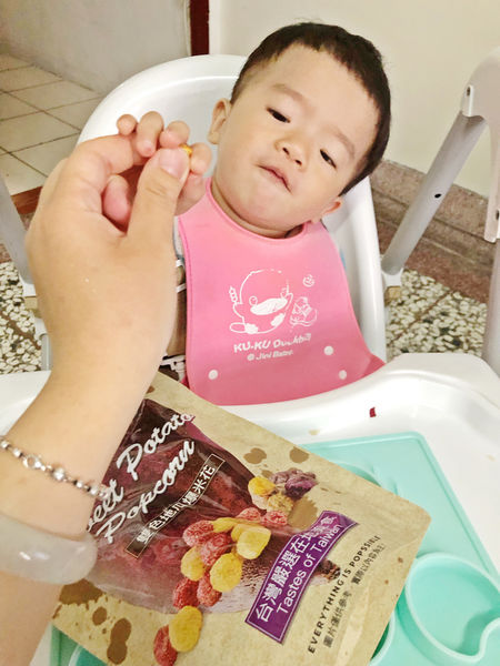 軒軒平日就很愛吃地瓜 , 我也會買地瓜回家自己蒸或烤給他吃當飯後的點心!雙色地瓜爆米花天然 、不甜不膩 , 食用安全放心!!看看兒子一直討著要吃的開心我也開心~