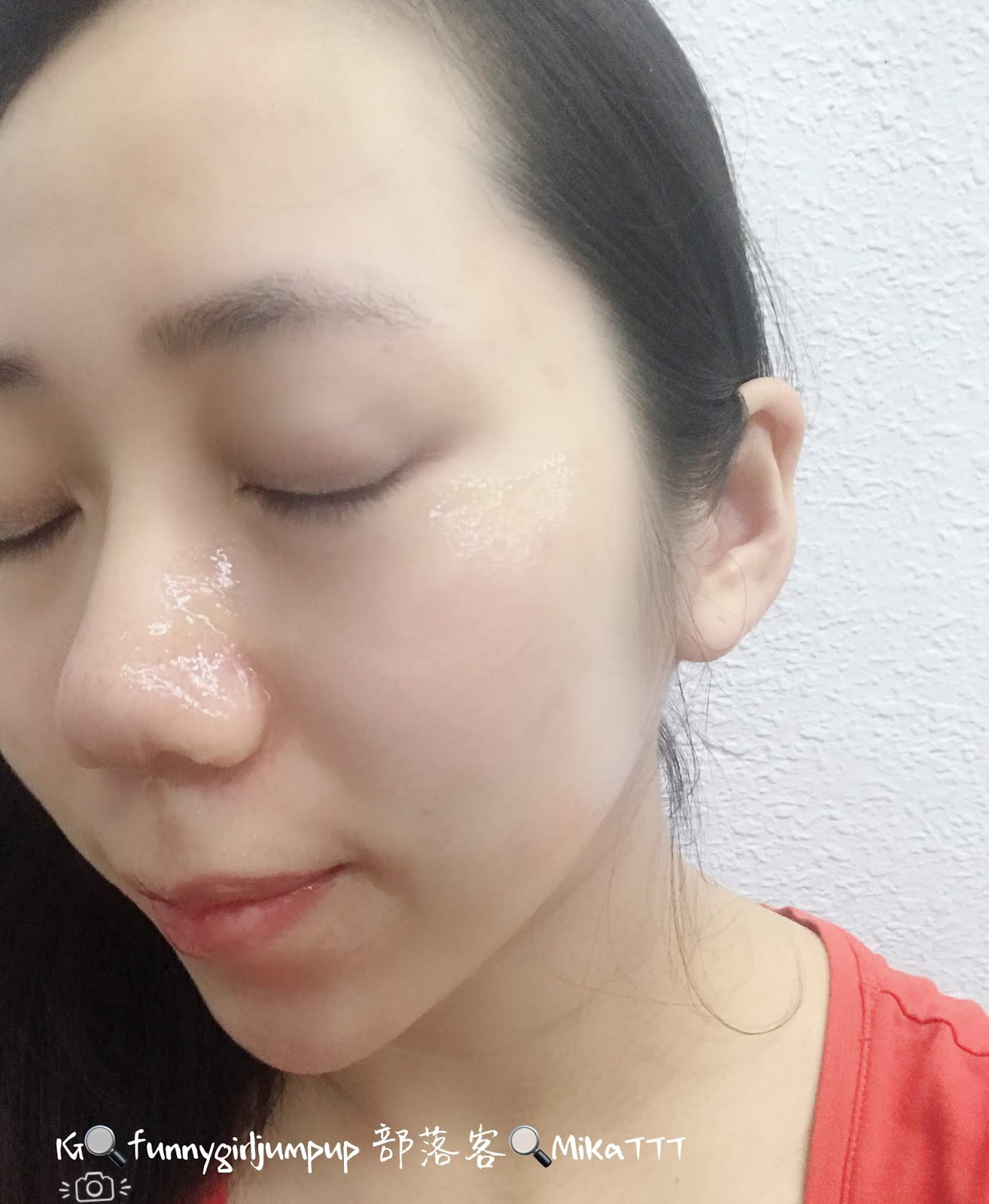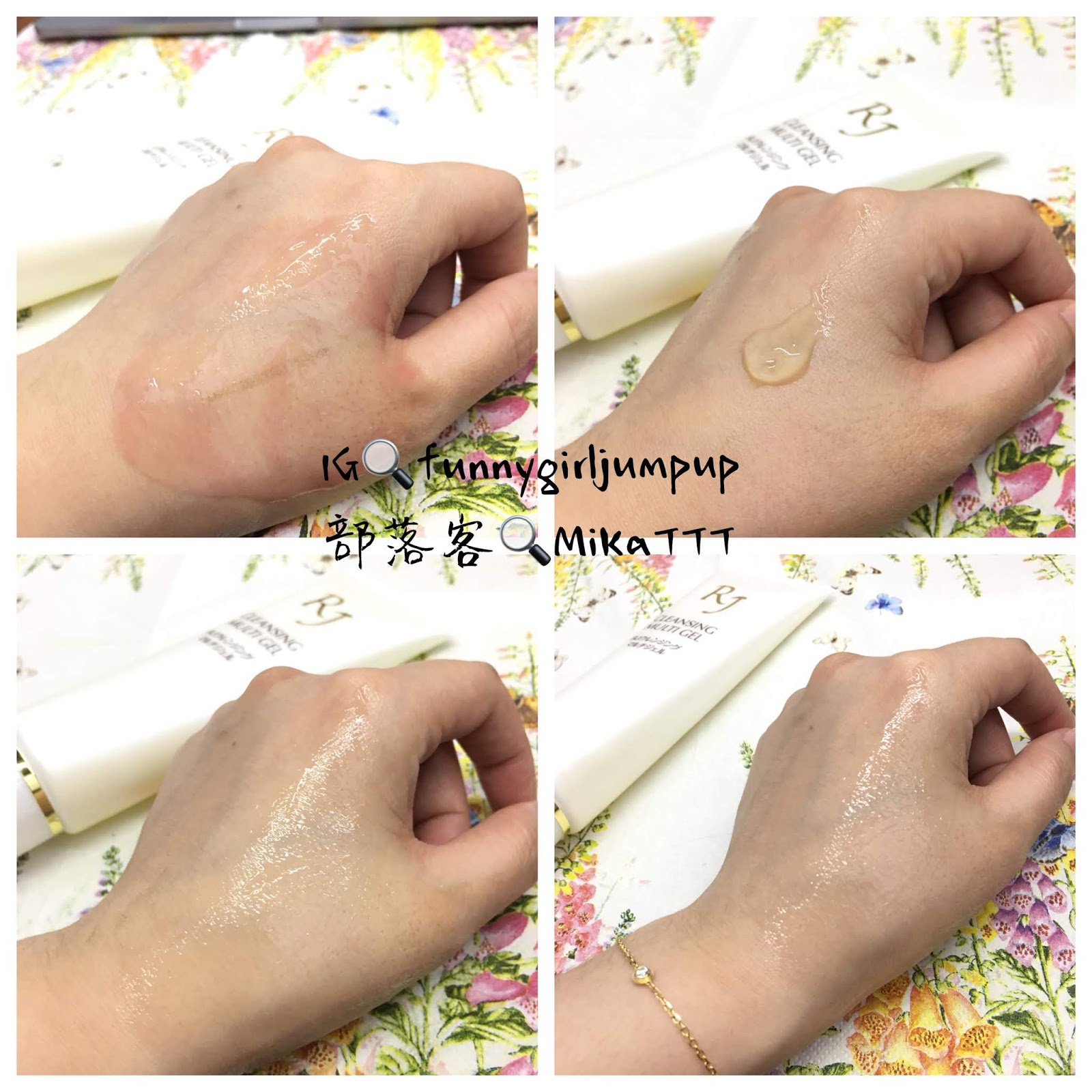4.一樣的步驟我會洗兩次,會發現與過去的卸妝差別是RJ多功能卸妝凝膠會非常溫和、不敏感肌膚讓我肌膚水感飽足!清潔程度是乾淨的