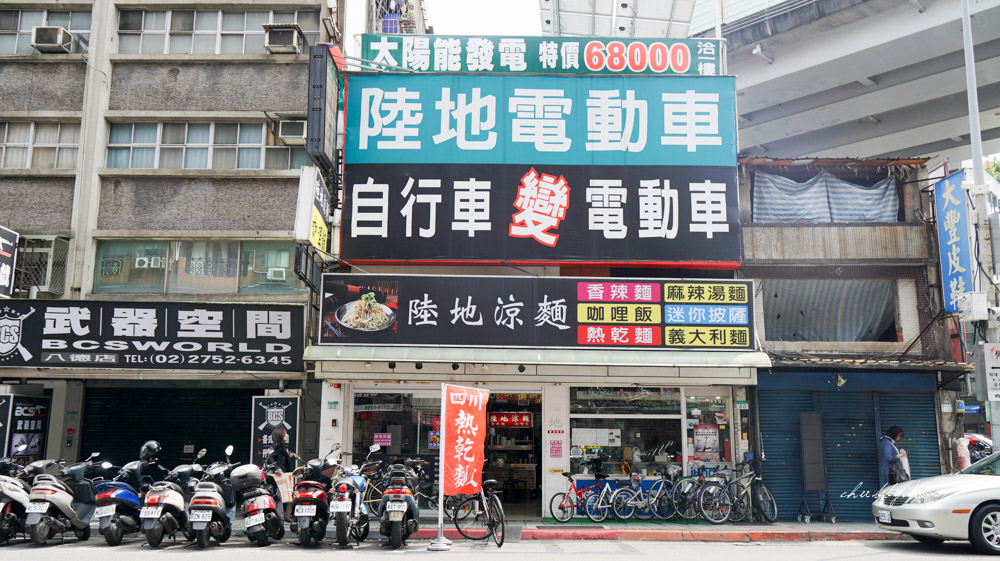 某年某月的某一天突然發現陸地電動車多了一個招牌叫做陸地涼麵,仔細一看原本有在維修手機的自行車店竟然真的藏了一個涼麵攤!這實在太神奇了感覺是獅子女巫魔衣櫥的衣櫃一樣有什麼詭異事情會發生,約了某天平日中午就去挑戰一次!