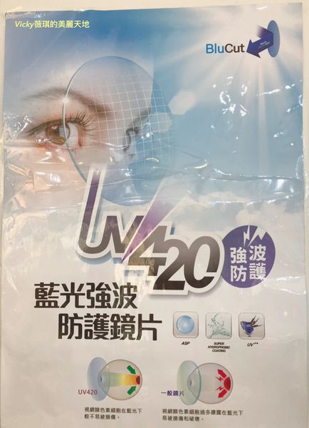 而UV420藍光強波防護鏡片幾乎能完全阻隔光線~