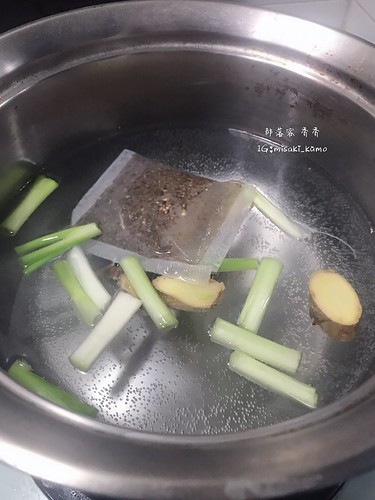 準備一些蔥段+薑片