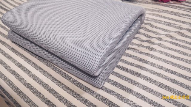 【舒福家居 3D透氣涼墊】厚度有1公分,躺在上面就像是隔著一層空氣而不是直接讓身體貼在床面上
