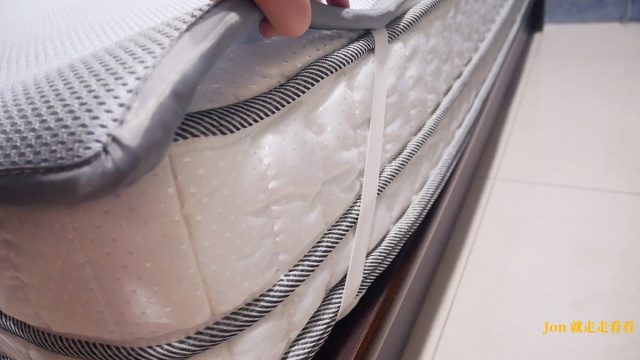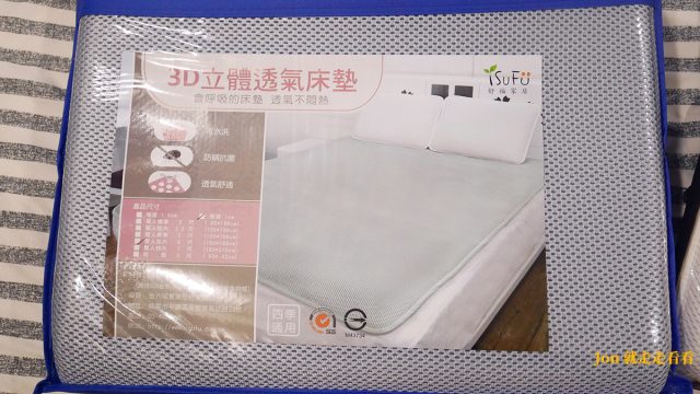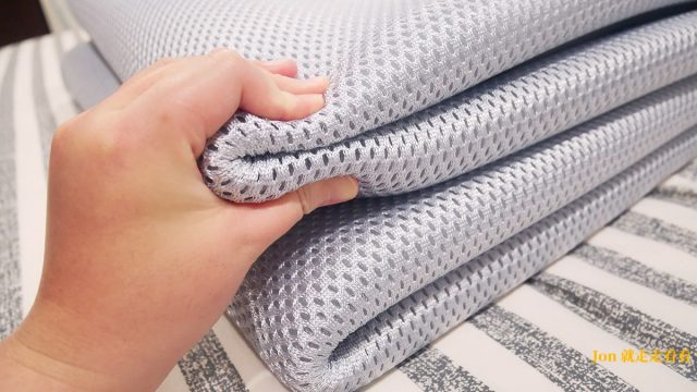 Jon在之前去選床墊的文章裡有分享,床墊的支撐性是影響睡眠品質很重要的一個關鍵因素,可惜Jon和A先生在新婚時沒有很好的挑選床墊觀念,不小心買了一張太軟的床,每天早上起床都常常覺得腰痠背痛。現在在床墊上面舖上了【舒福家居 3D透氣涼墊】,除了更透氣不會睡得滿身濕黏之外,【舒福家居 3D透氣涼墊】的交叉支撐結構也讓床墊的支撐性變好了,同時改善了睡眠姿勢,睡得更好了