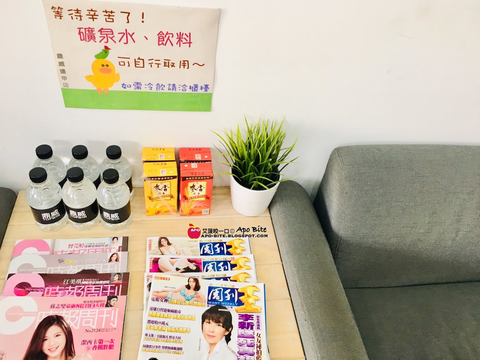 在等候區有貼心陳設舒適的沙發、雜誌和茶水
