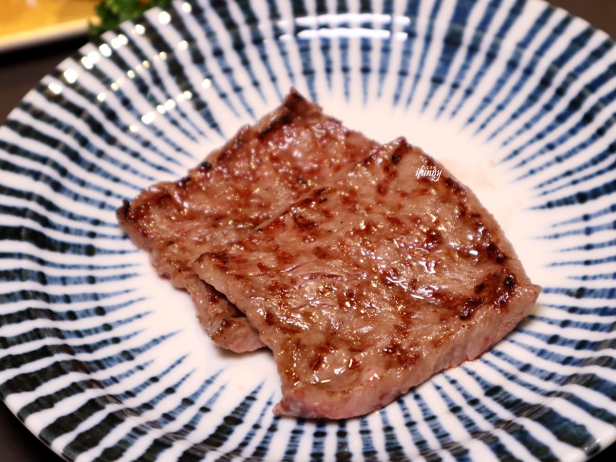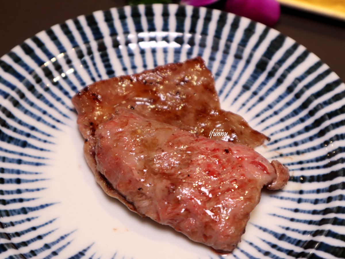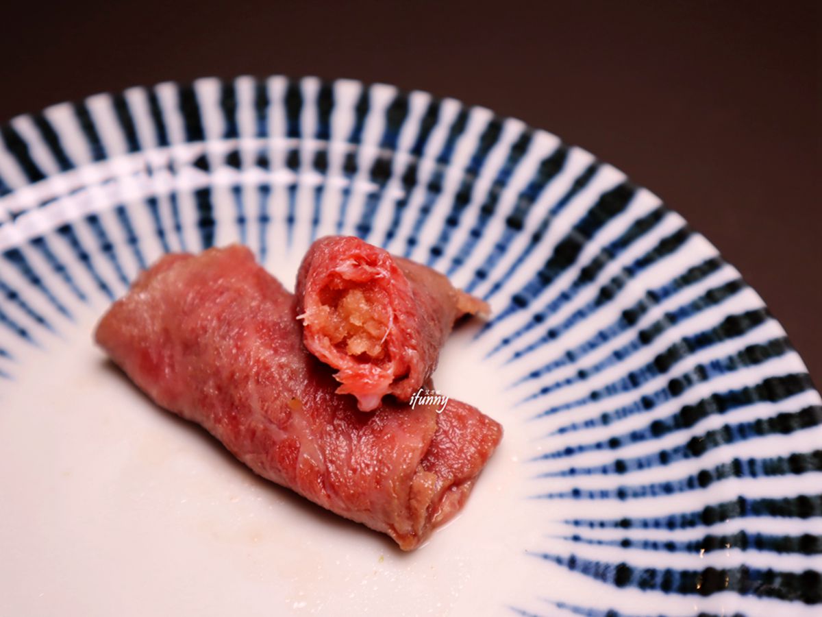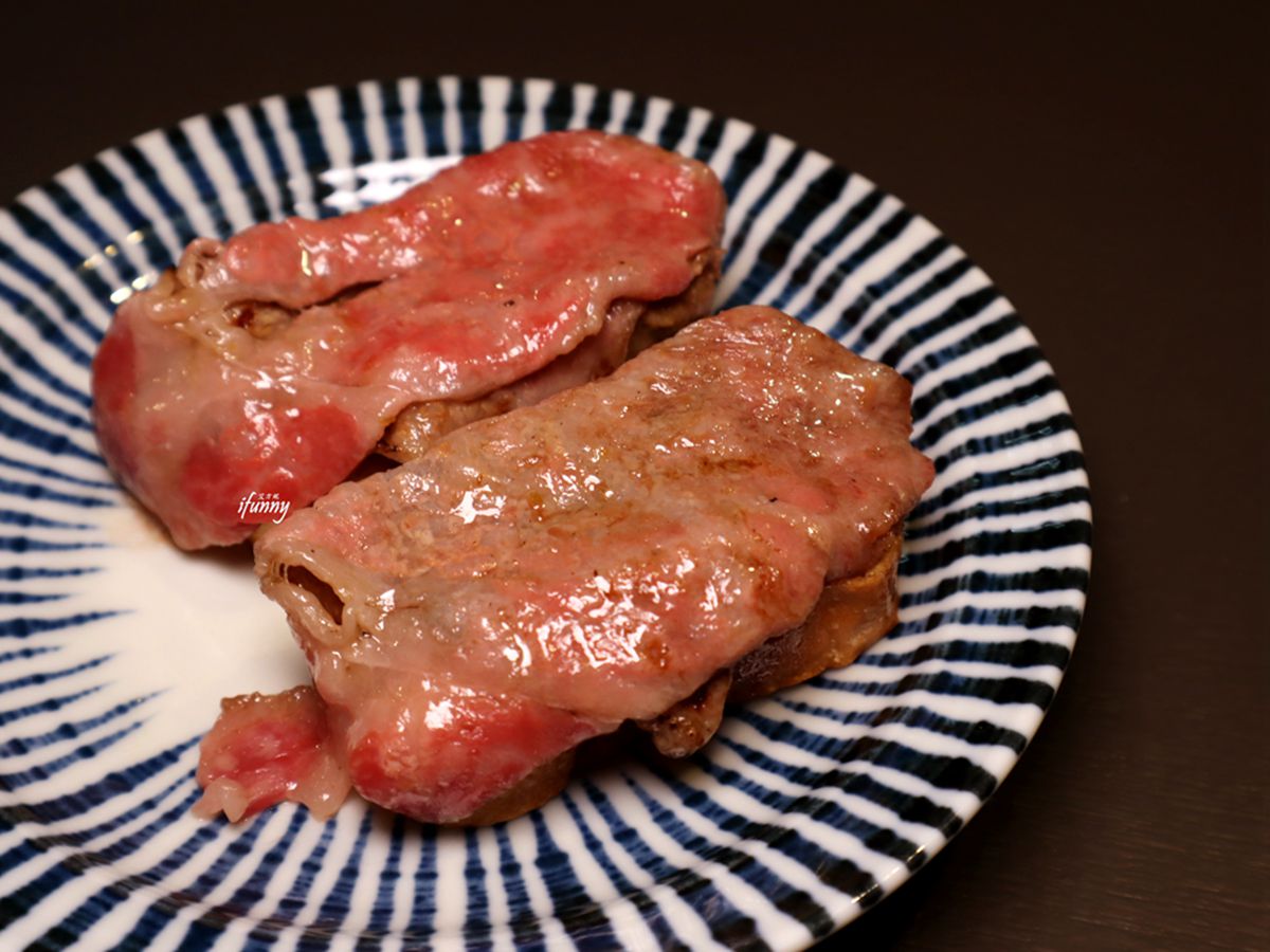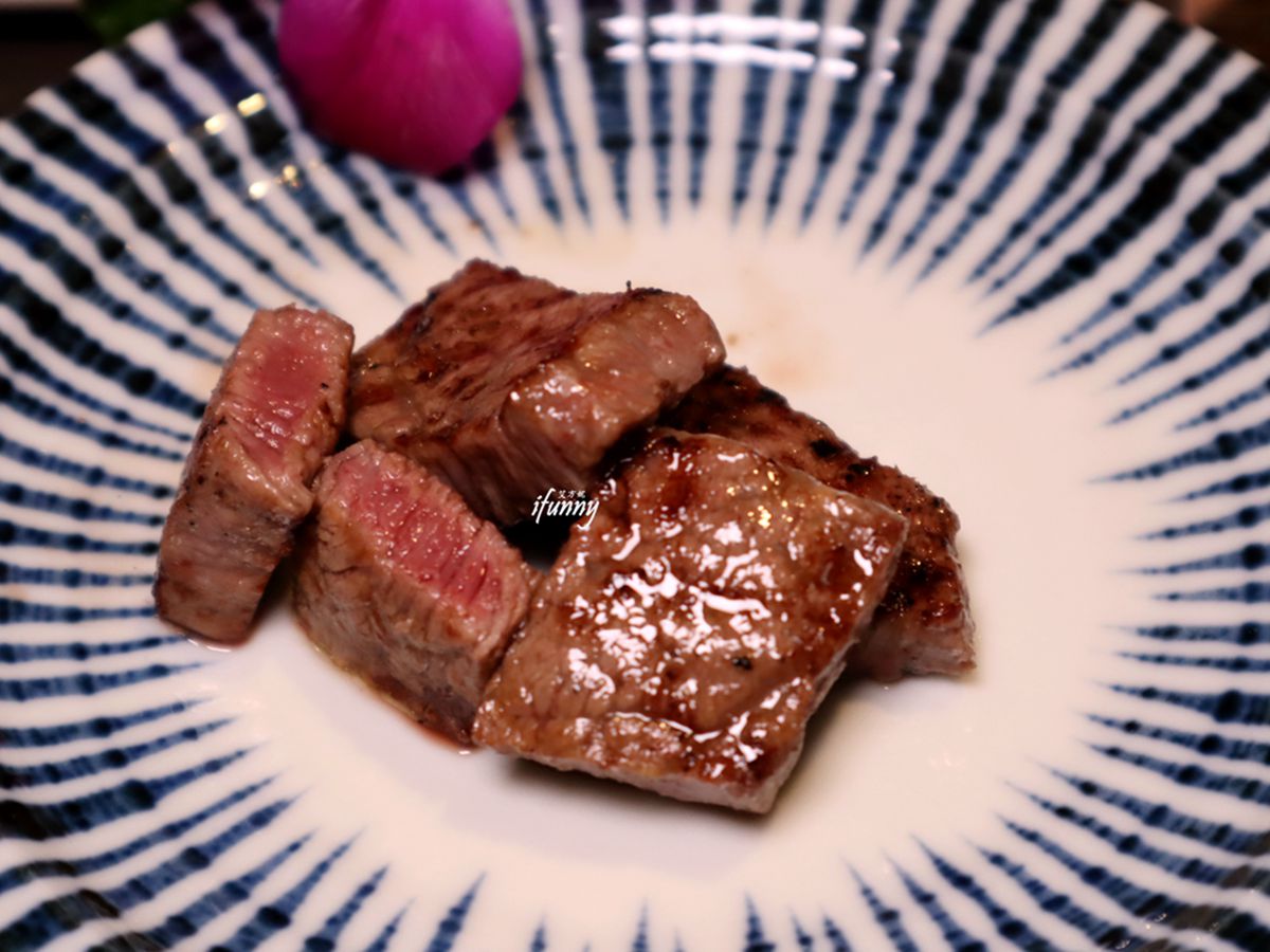 蘿蔔泥及蒜香奶油的味道都是一點點提味,最重要的是品嚐和牛的鮮美滋味,採用的是腿肉,沒有太多油脂,因此3分熟剛剛好,非常地軟嫩香甜。當然如果想吃熟一點,也可跟服務人員指定烤肉的熟度。