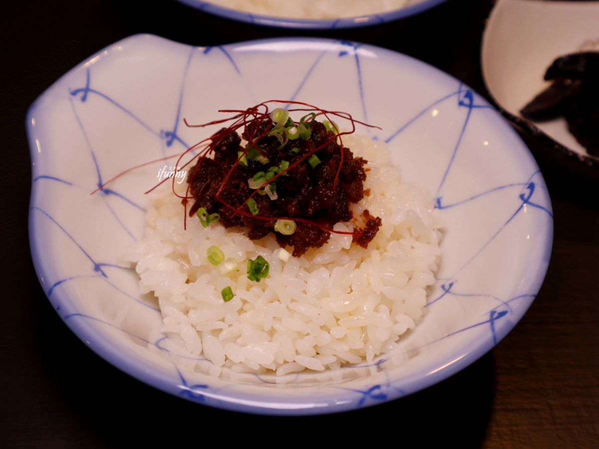 最後還上這一碗和牛醬飯,採用西螺冠軍米,搭配香氣十足的和牛醬,有油香有嚼勁,這跟白飯拌勻之後,實在太美味了啦!這不管吃太飽都能把這一碗嗑掉啊!