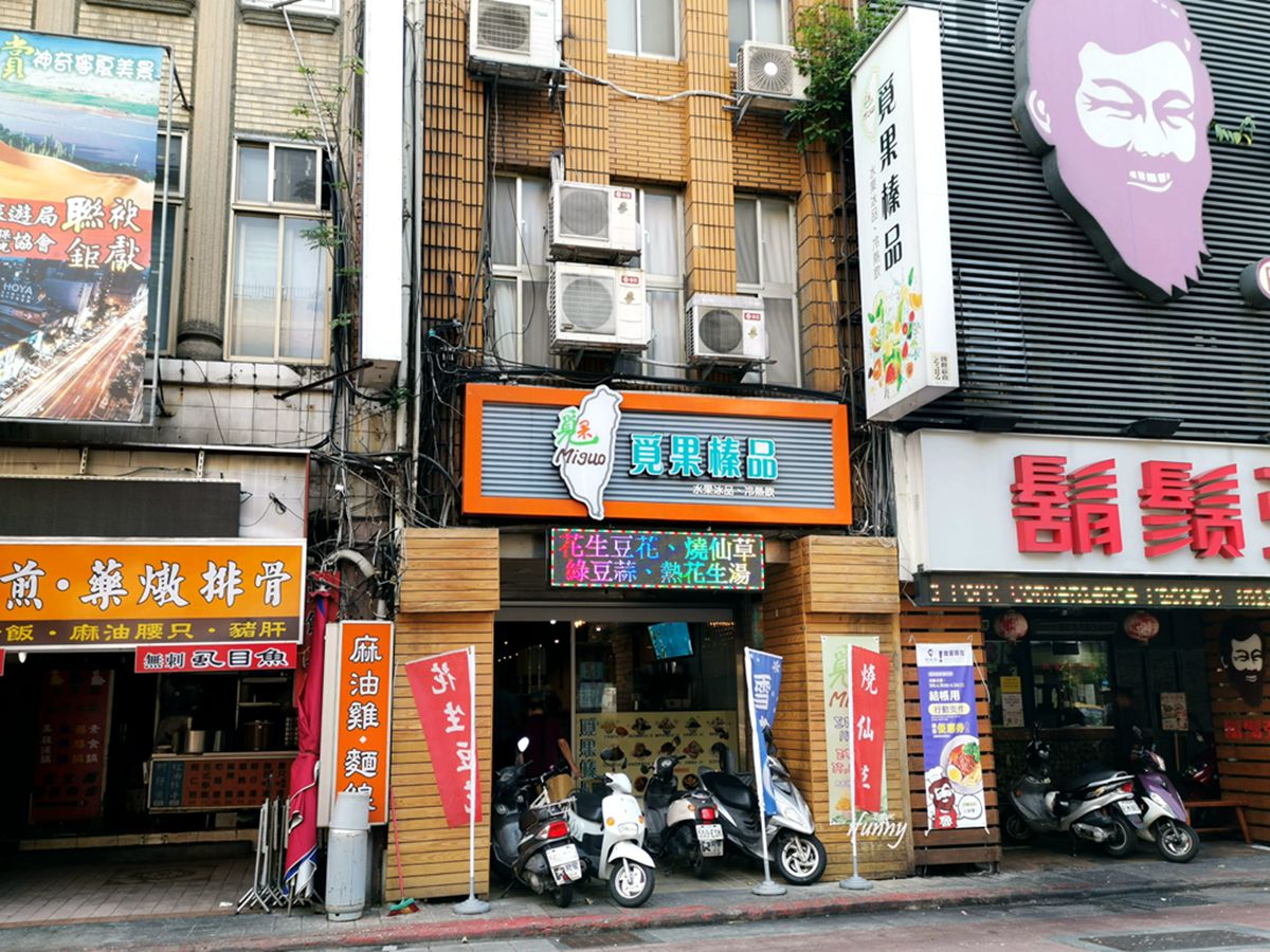 覓果榛品就是位在寧夏夜市的整排店面之中,這天下午來訪,中間的攤車都還沒出攤,難得站在空盪盪的馬路上拍照,也是種成就(哪門子成就?)