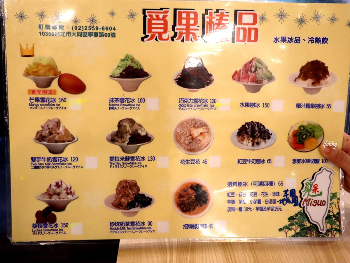 寧夏夜市就位在閨蜜家附近,所以還算熟悉,沒想到原先的李家香虱目魚,變成了新穎的覓果榛品,改賣起了雪花冰剉冰,這天特地約了好友一起來嚐鮮。