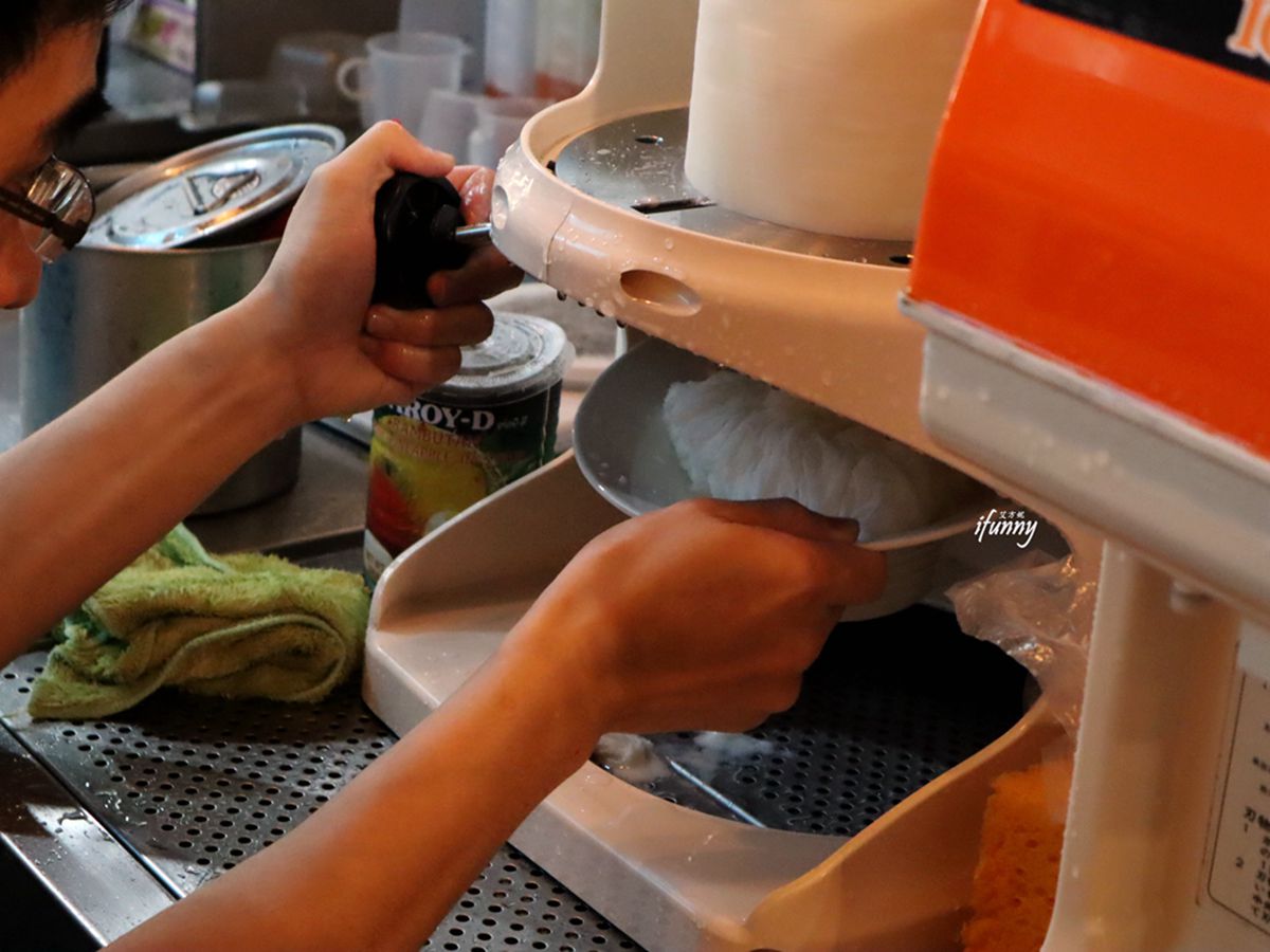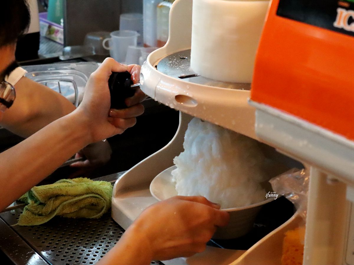 接著老闆開始製作我們的提拉米蘇雪花冰,其上放的是奶蓋醬。覓果榛品的奶蓋醬及煉乳也是自製的呢!