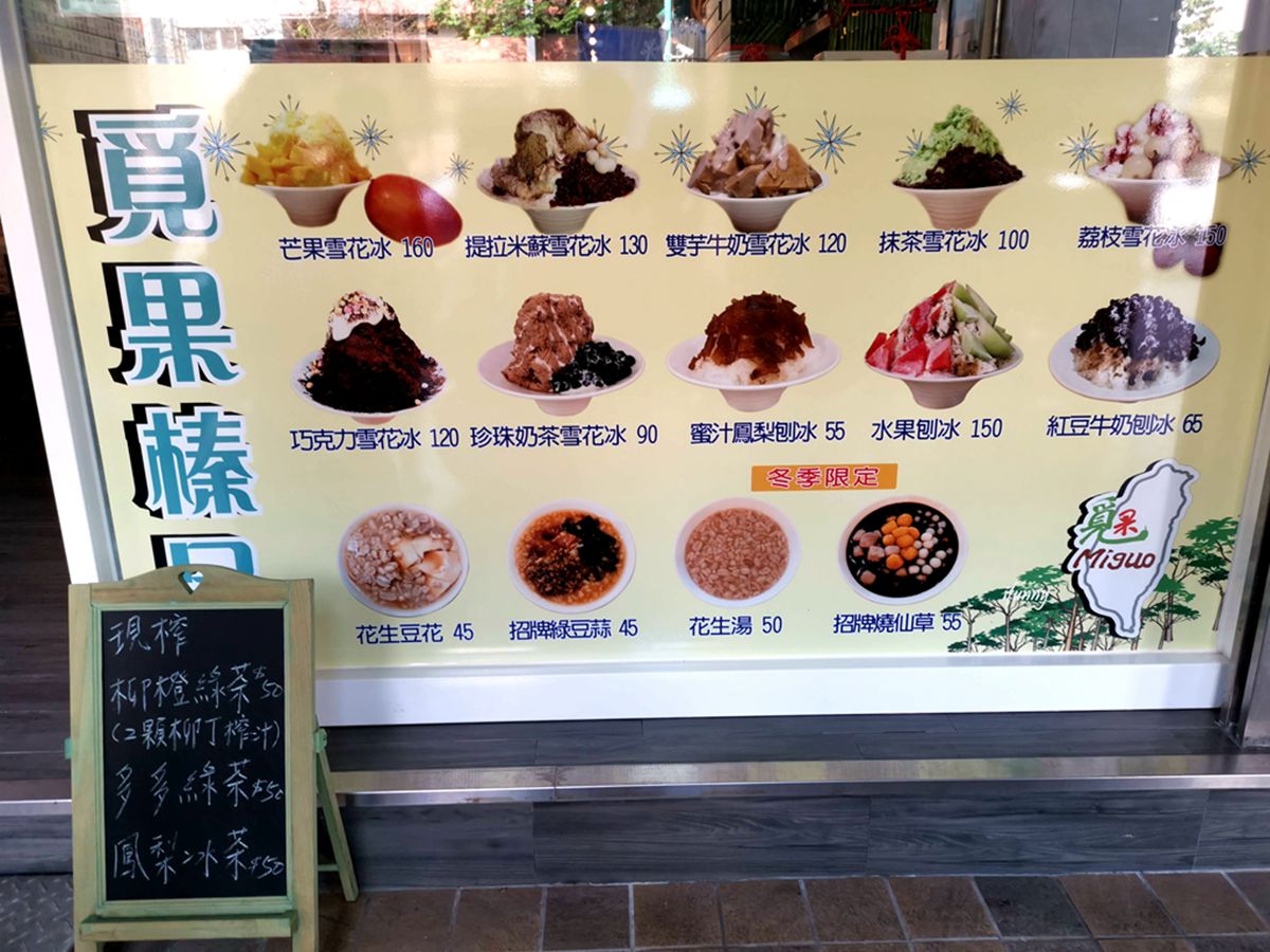 覓果榛品用的是台灣當季盛產的水果,會製作成雪花冰磚之外,也會運用在冰沙、飲品上。