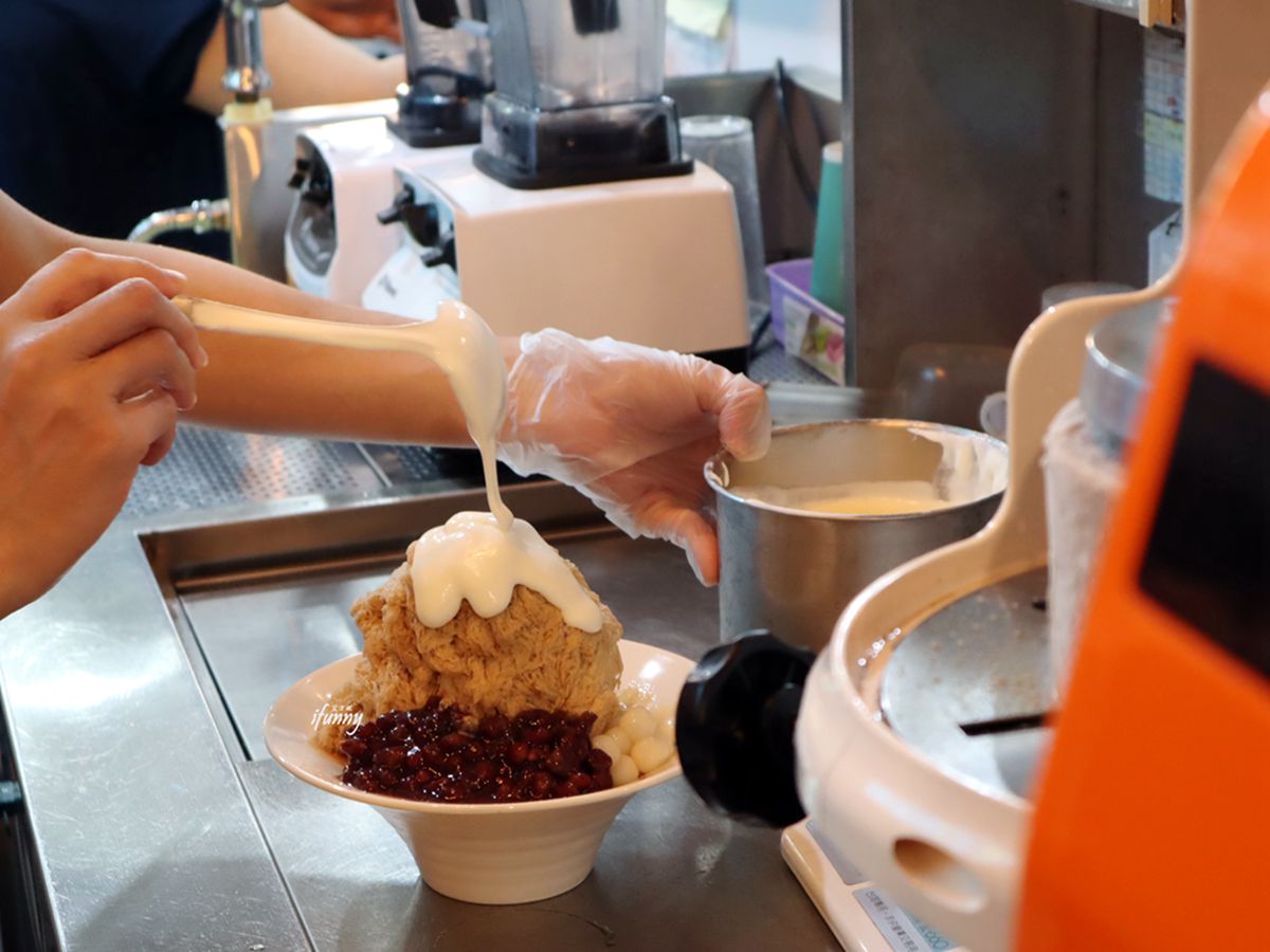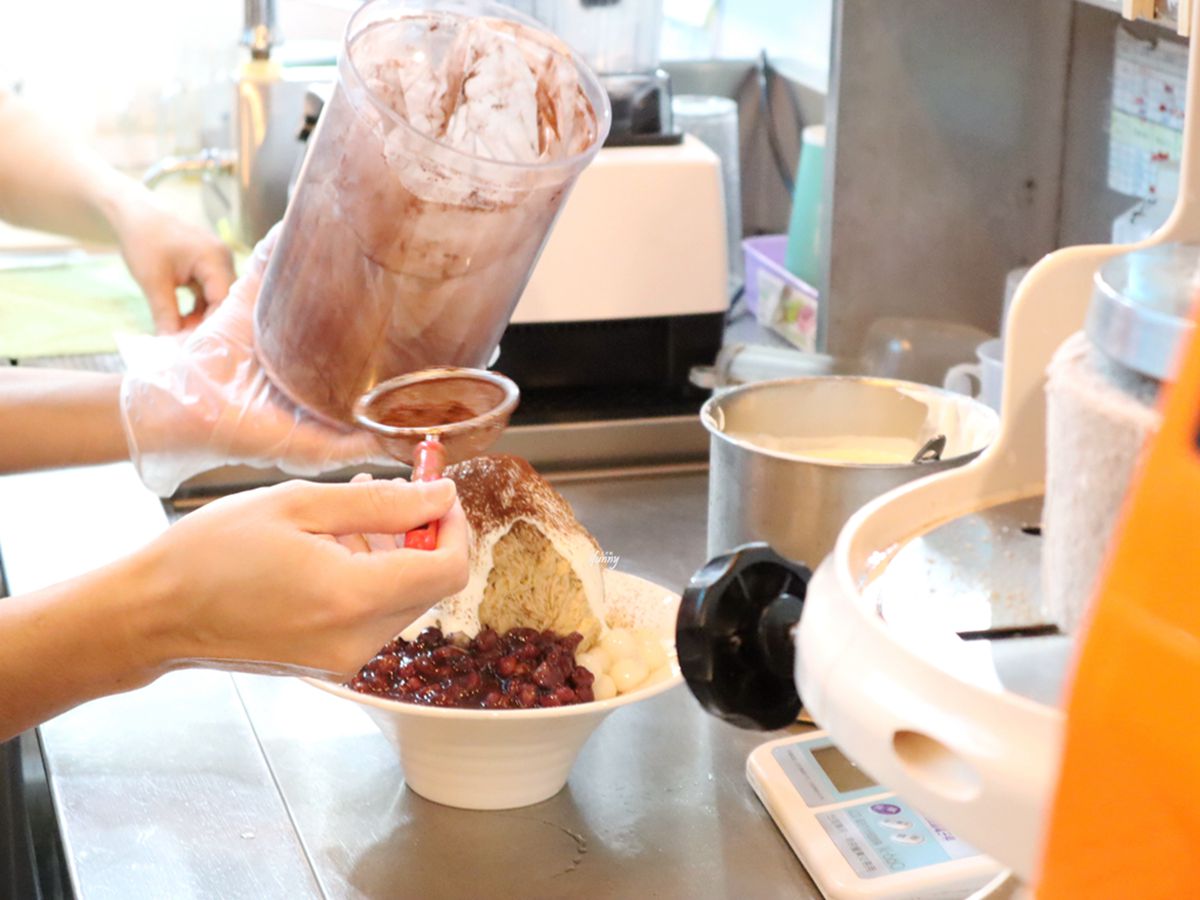 老闆跟我們說,本來他們只想賣雪花冰,但附近的老鄰居都想吃刨冰,於是他們又開始煮紅豆、綠豆、芋頭等配料,秉持著一貫的原則,完全都是自製的,用心在每一個環節,絕不妥協。