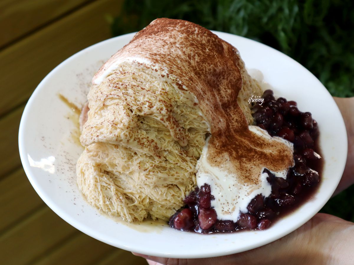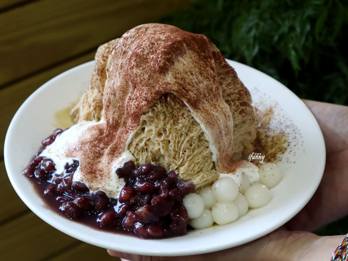以咖啡冰磚製作而成的雪花冰,還有濃濃的巧克力味,奶蓋也取代了蛋糕中的馬斯卡朋起司,最特別的是多了一絲絲的鹹味,中和了一些甜膩感,是會令人一口接一口吃不停的。自煮的紅豆超綿密,符合現代人養生的概念,一點都不會太甜。那個小湯圓更是軟Q可口。這一碗冰讓我們邊吃邊點頭啊!這樣我們就更期待巧克力雪花冰的滋味了呢!