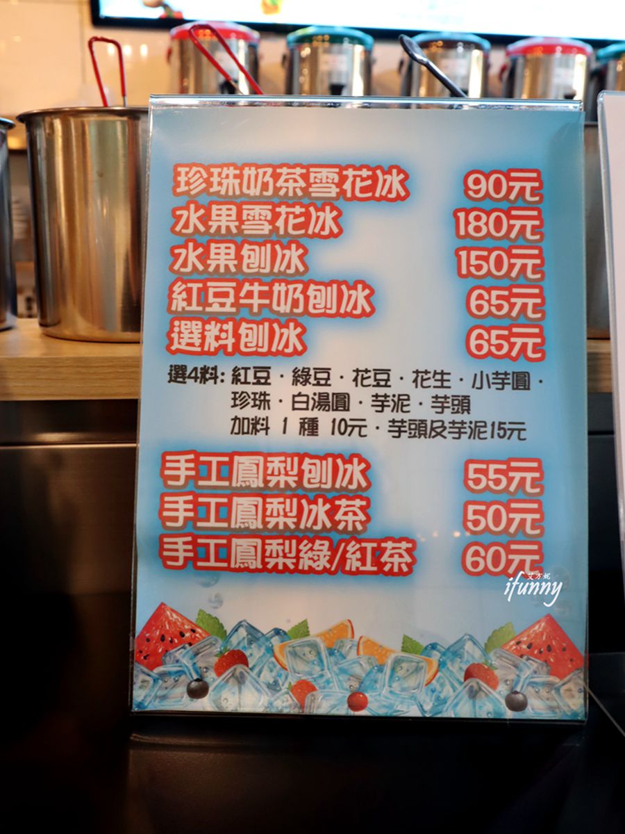 老闆告訴我們他們使用的雪花冰磚,都是研發自製的。目前研發自製雪花冰磚的口味有芒果、荔枝、牛奶、抹茶、珍珠奶茶、哈蜜瓜、巧克力及咖啡,這些都是經過無數次的調整及試吃,至今的味道都是他們非常滿意的程度。