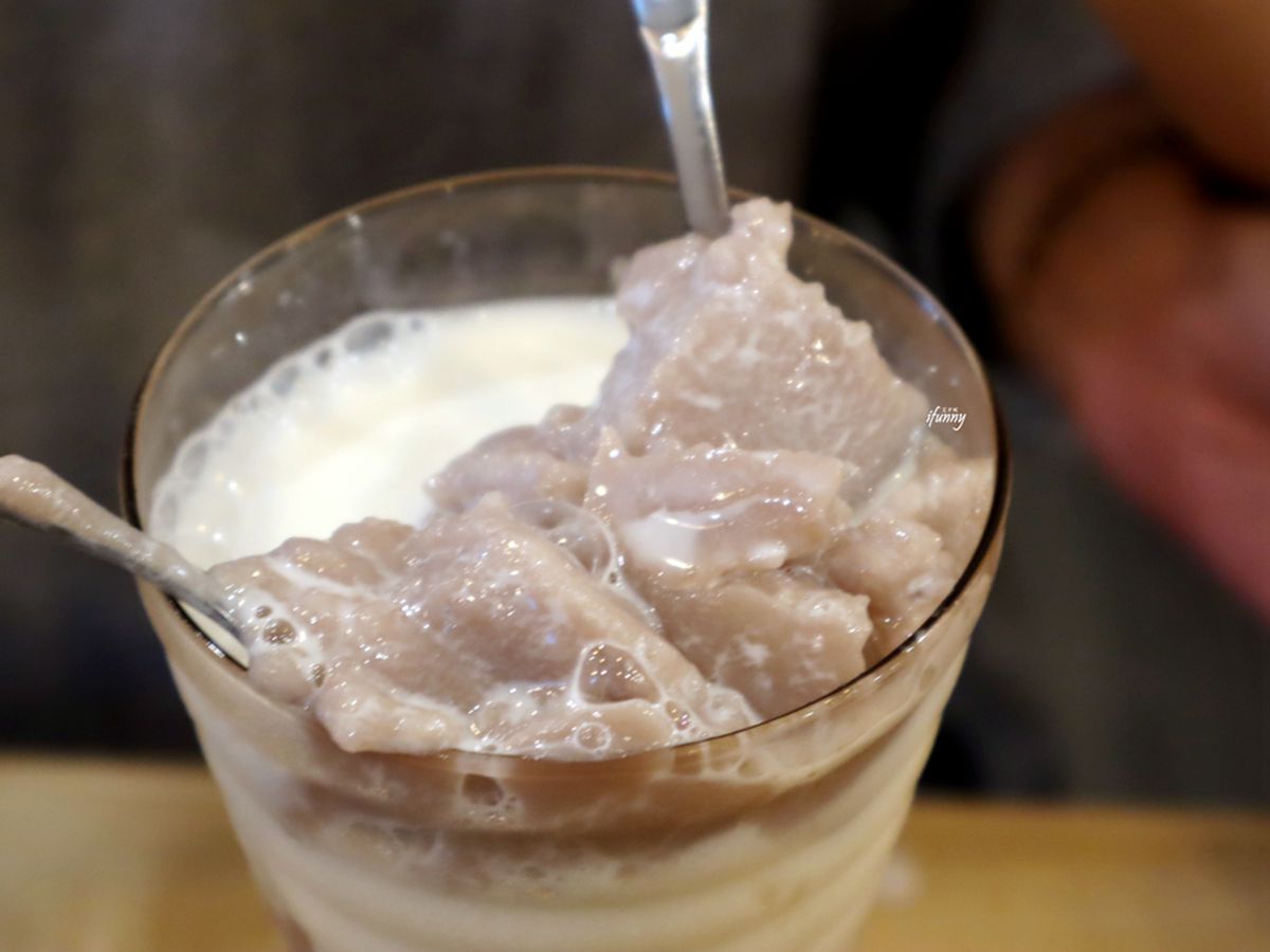 這一杯中只有兩樣東西組成,就是芋泥及牛奶,就這樣沒別的了!