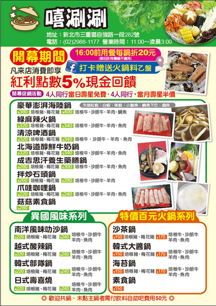 今天要分享一家位在三重自強路上的"嘻涮涮 平價特色火鍋"