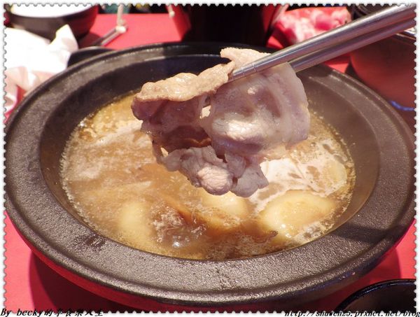 而沙朗牛肉,因為肉質較為紮實點,因為肉片有稍為有厚度,與牛奶鍋搭配,可以吃的到有奶味的肉質及肉汁。