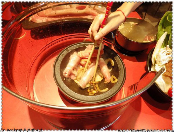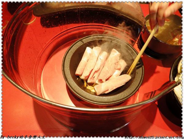 到最後,我們則是混著涮肉~把羊肉放入石頭中,羊肉味很重,個人認為不適合~而牛肉倒是蠻合適的,吃起來鮮嫰可口。
