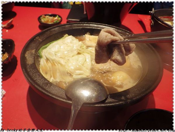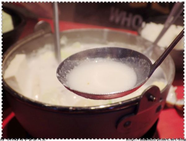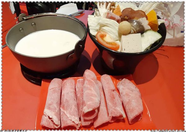 牛奶鍋是用高湯加上鮮奶,經店家精心調配的比例調和,煮時有著有濃郁的牛奶香撲鼻而來;加入蔬菜等食材後,喝一口湯頭有著清甜及奶味,喝起來不會感到油膩感,裡頭完全是純天然的,不添加鹽巴調味。而牛奶鍋添加的湯頭是直接加鮮奶喔!老闆說這樣子才能讓奶味更加濃郁,不過因有涮過蔬菜及肉類,所以味道略為鹹些~