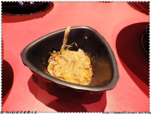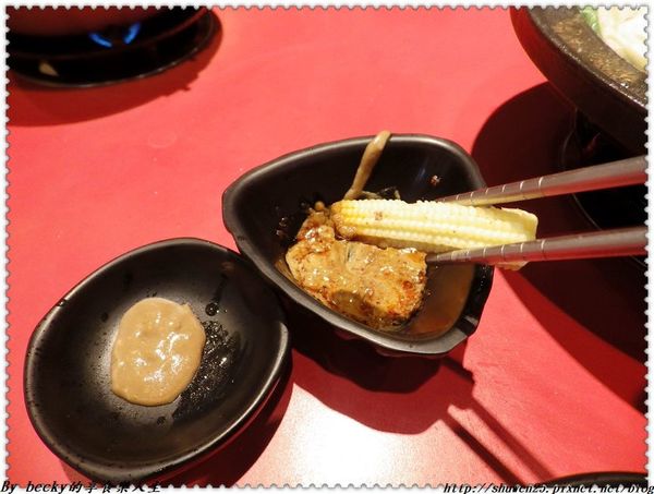 沾醬部份,老闆特調的豆腐乳+辣油,吃起來有腐乳香及辣味,肉類或蔬菜類沾著吃,味道很不錯,這個蠻推的喔!