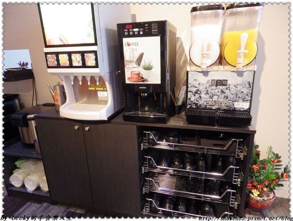 進門的右手邊是飲料、餐具區,飲品部份會隨時更換,老闆有可能會增加茶類,也有可能會新增近期盛行的珍珠鮮奶,當然都是手工製作的。
