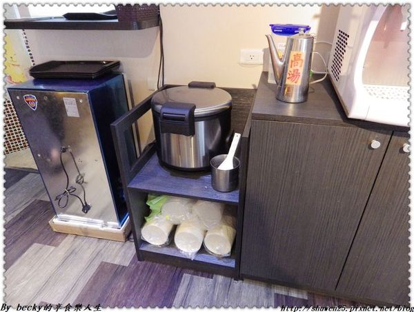 這是米飯,有些朋友喜歡吃火鍋也配米飯,所以大部份小火鍋都會有附飯;櫃檯上有高湯及白開水可以自取添加。