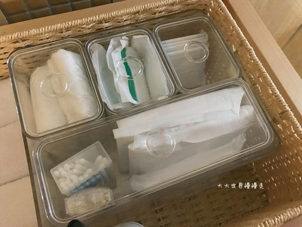 再來看一下備品,有棉花棒、紙內褲、護墊和衛生棉,最貼心的是還有溢乳墊耶!