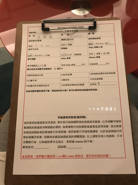 到了店裡也需要填寫諮詢表,芳療老師一樣會再諮詢一次和解說一次!