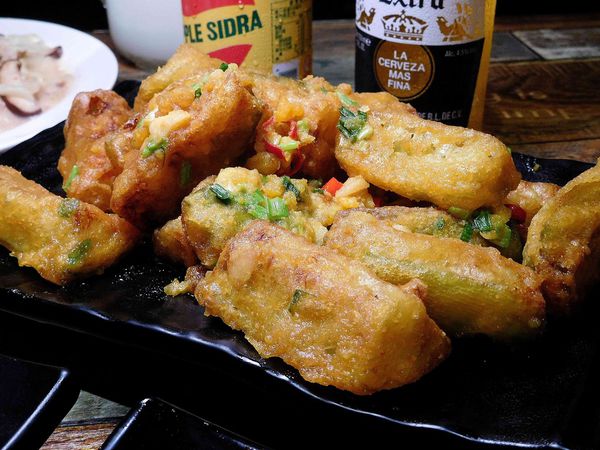 裹著金沙麵衣 ,先炸後炒 ,鹹香的金沙與甜脆帶汁的絲瓜 ,保留了絲瓜的清爽口感 ,又帶著金沙特有的鹹香