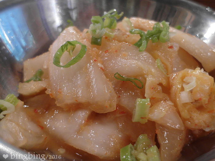 老闆說,這是它們家的招牌泡菜,吃起來口感脆脆的泡菜非常下酒