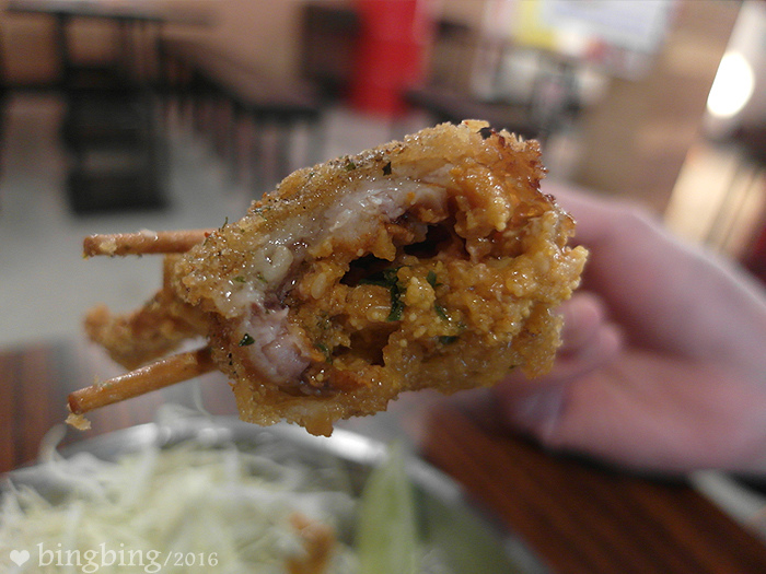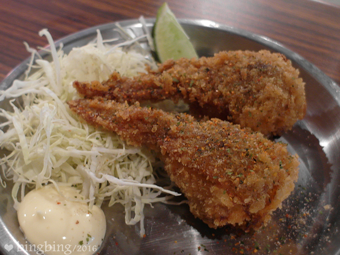 雞皮炸的金黃酥脆,肉質吃起來超啾C的,雞翅裡面塞滿了明太子,吃在口裡會有一種極鮮的口感
