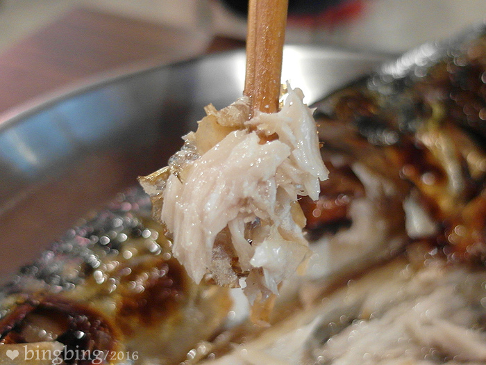 魚身對半剖開,外層烤到帶有一點點焦香,所以魚皮吃起來會有一點恰恰(台語)的感覺