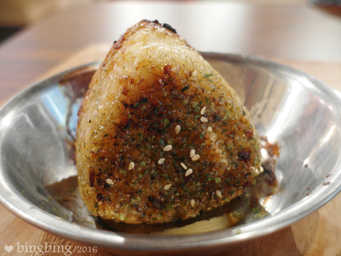 烤飯糰不是烤得乾乾硬硬的那種,相反的,反倒很有濕度,外層的醬汁也很好吃