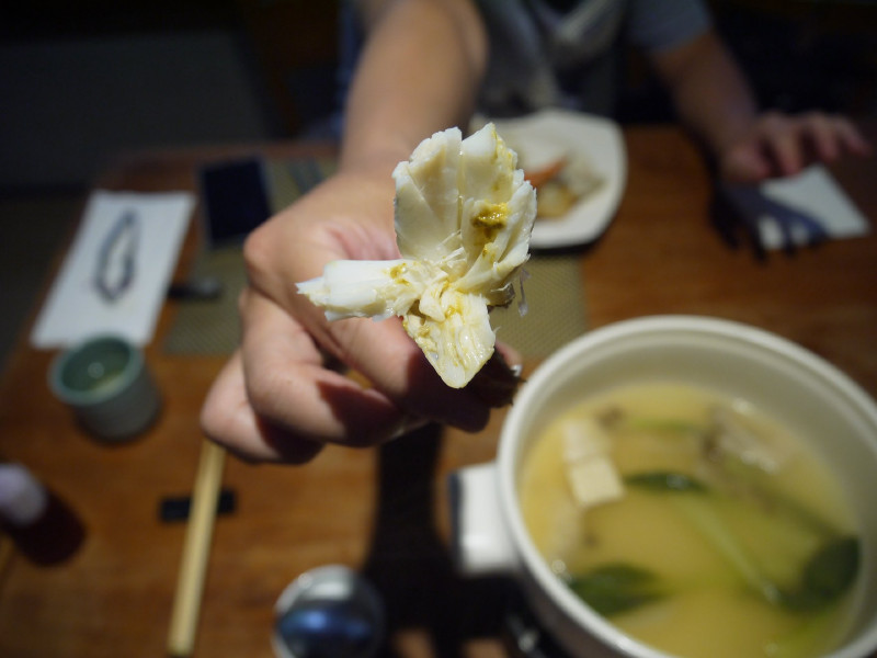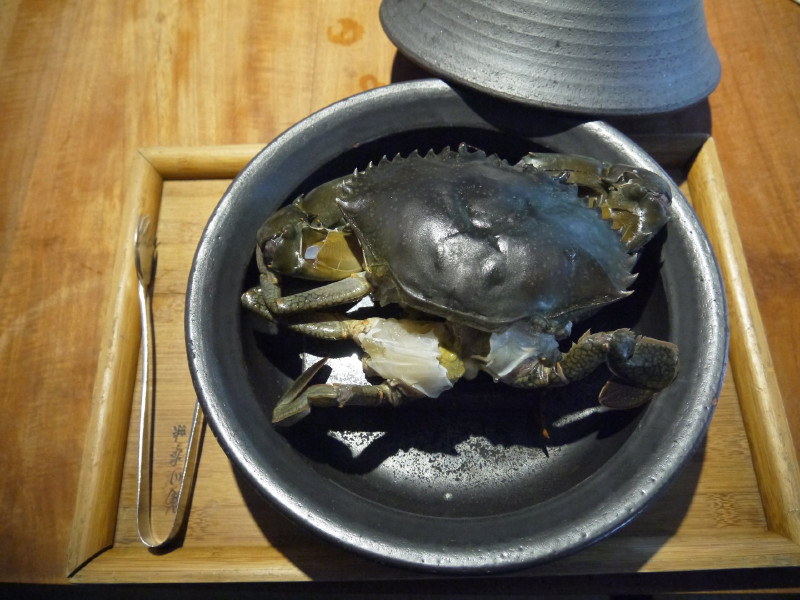 利用岩石的高溫及大吟釀清酒的蒸氣來把螃蟹蒸熟