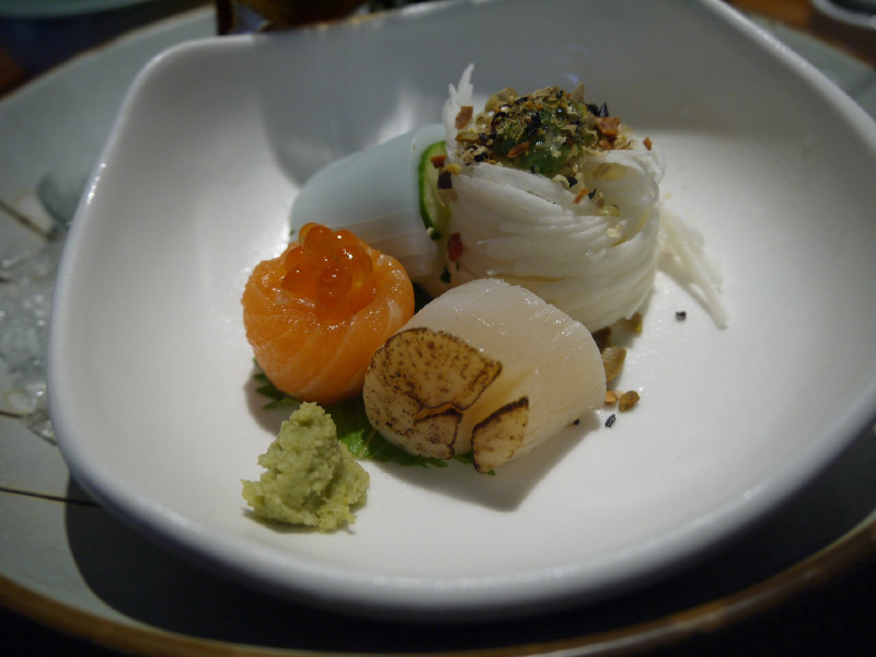 有鮭魚 干貝 花枝 旁邊有新鮮現磨的山葵