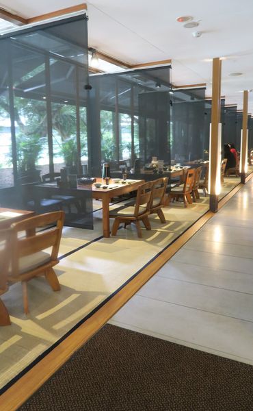為了給客人充分的放鬆以及降低干擾桌與桌之間都會採用布簾作為間隔.