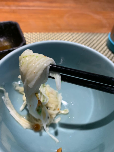 一夾就斷. 吃起來也真的很Q彈. 我完全沒沾醬吃就超美味! 七七也是超愛 ♡