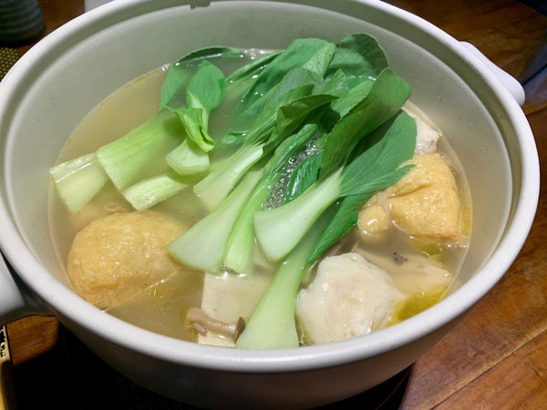 此時再加入青菜熬煮. 看起來很像要開吃關東煮了XD