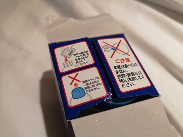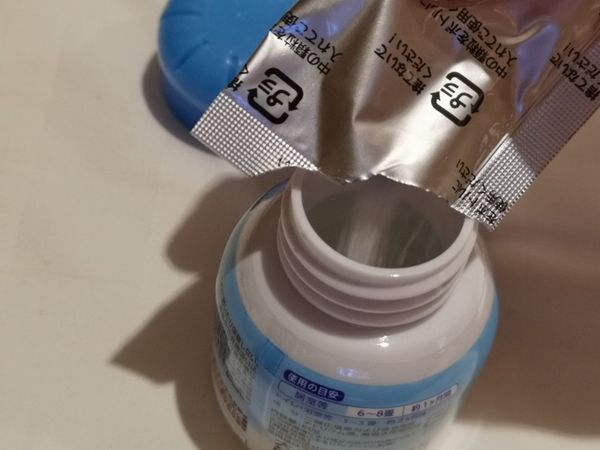 白色瓶蓋打開,將內附鋁箔袋中之粉劑倒入瓶中,靜置約15分鐘